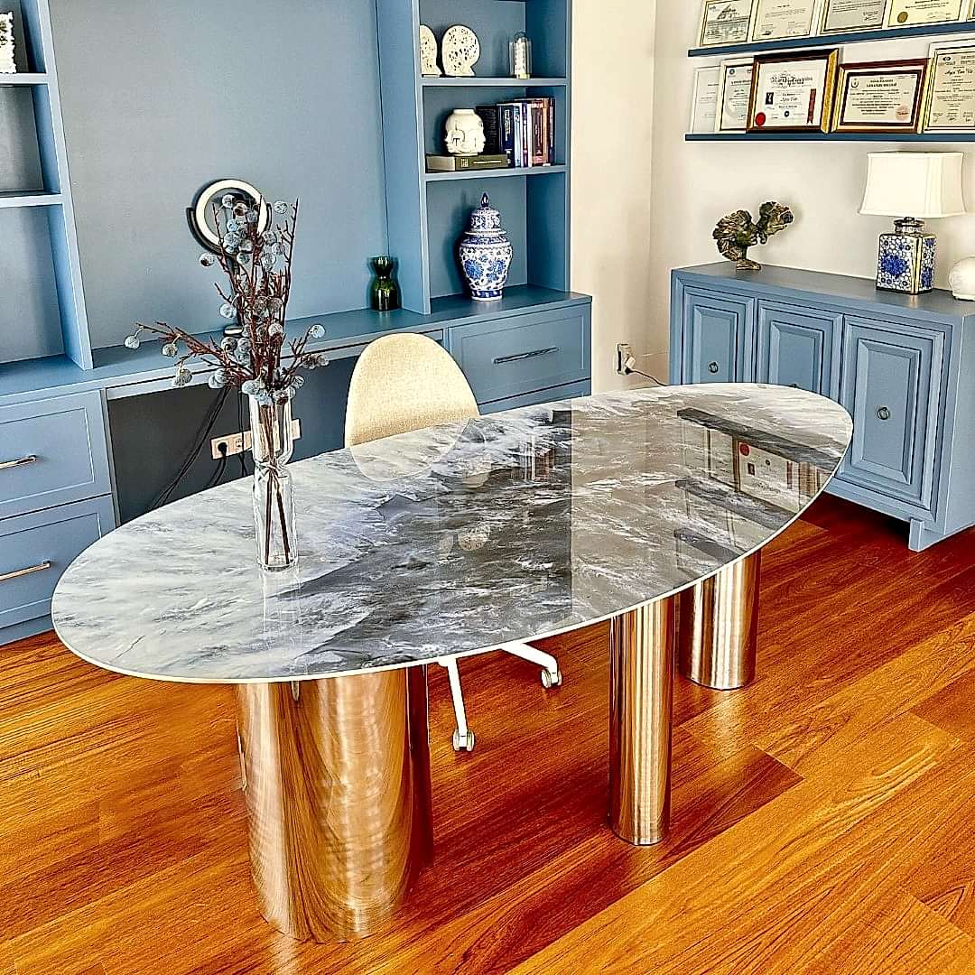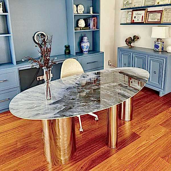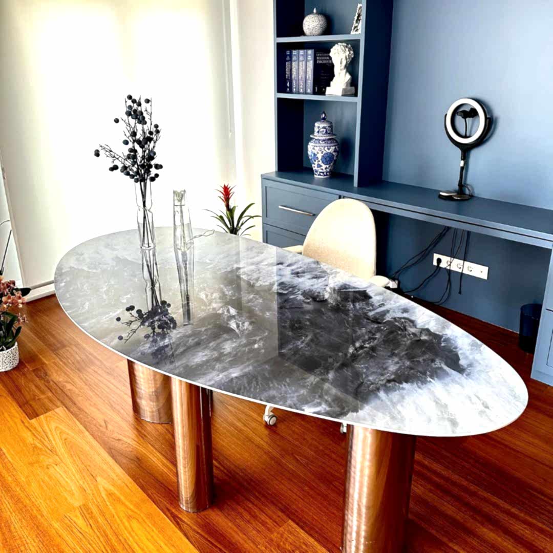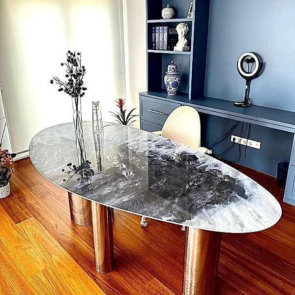 100x210cm Ölçülerinde, özel elips kesim seramik masa & porselen masa