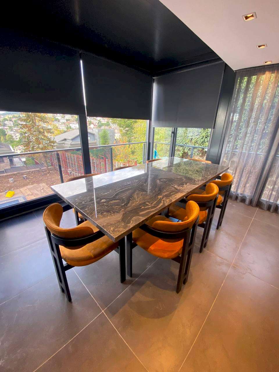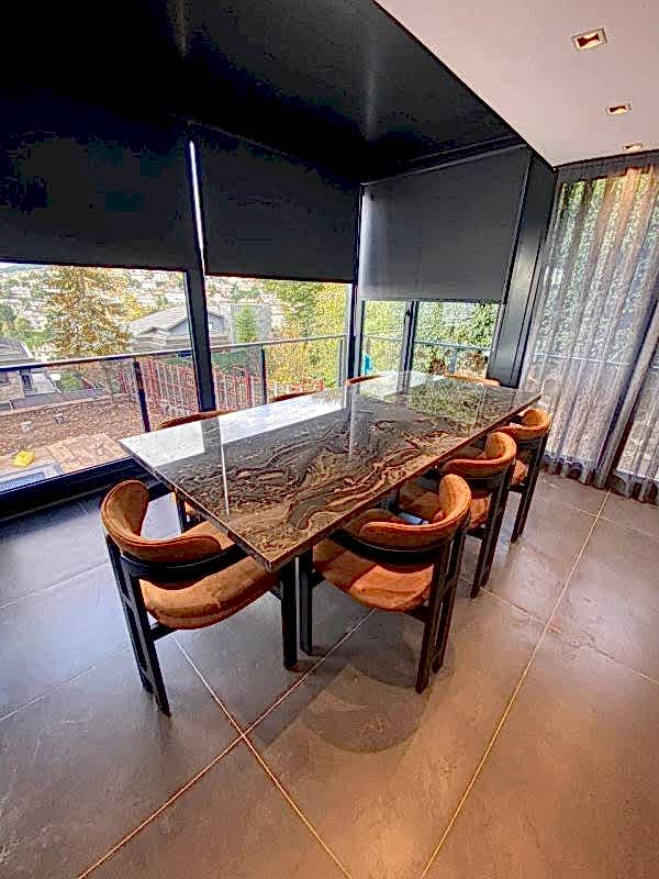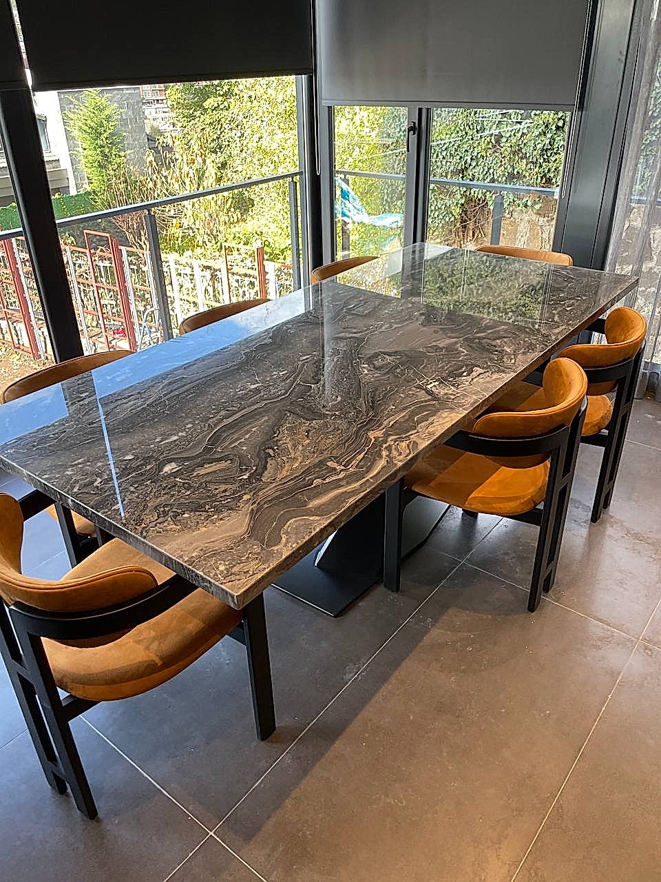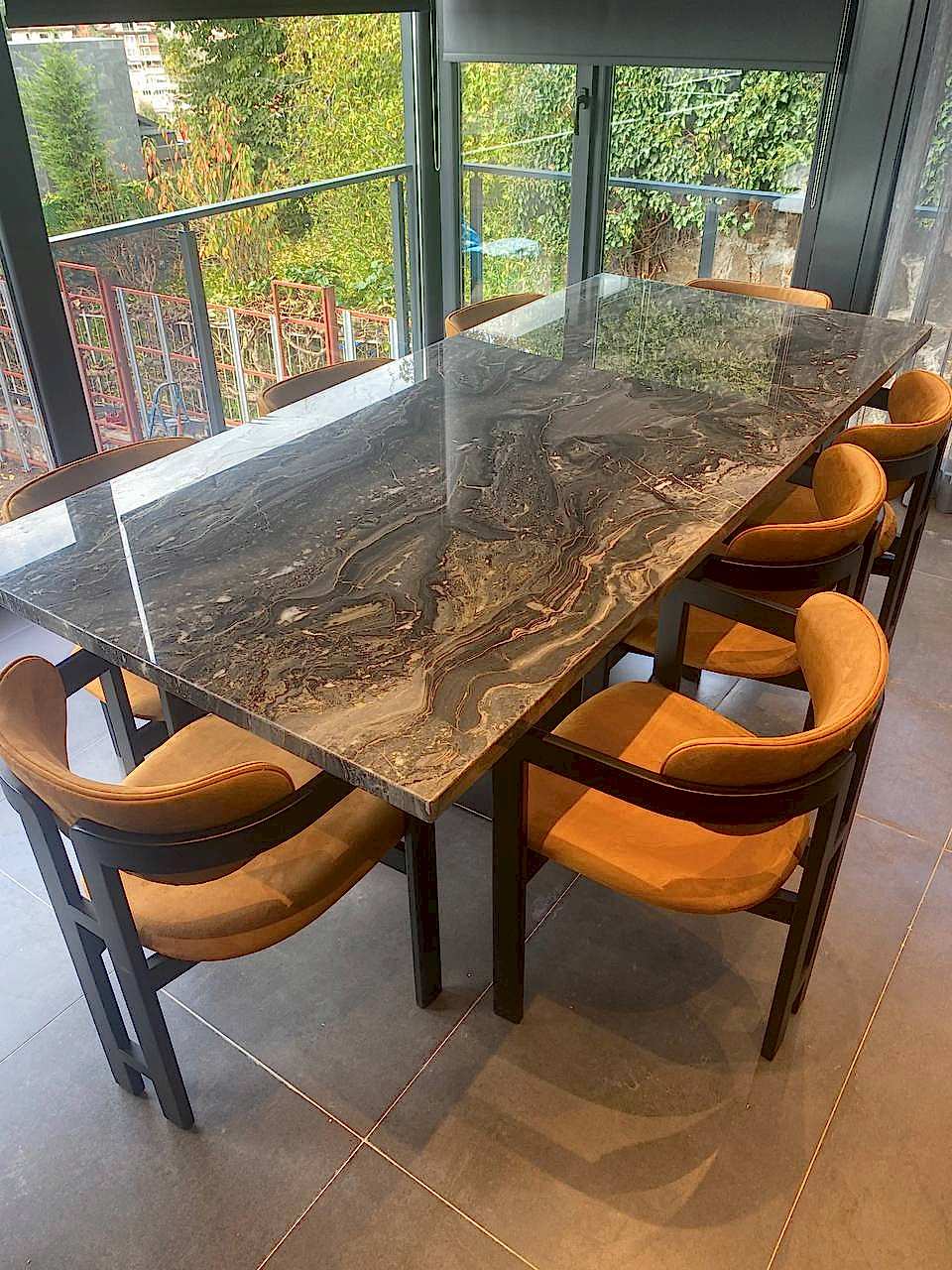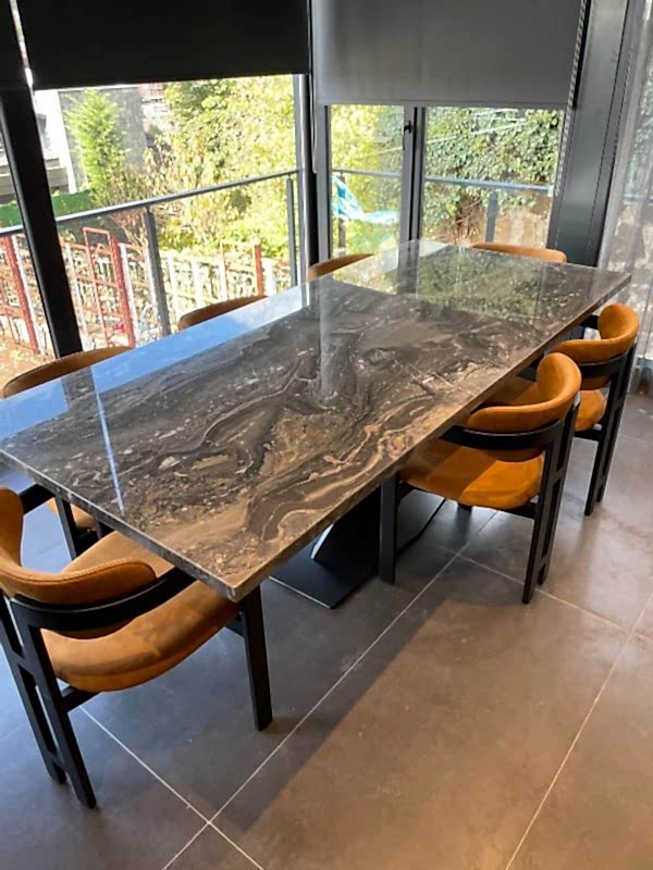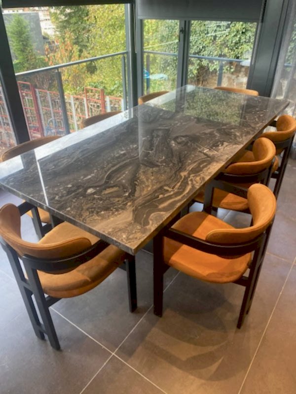 8 Kişilik Mermer Masa Takımı, İtalyan Grizio Versilla Mermer Kullanılmıştır.