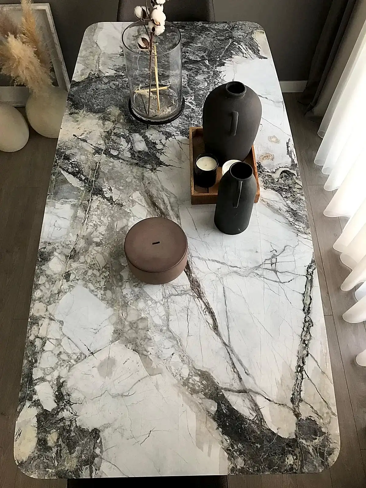 Tüm mermer masalarımız isteğe bağlı olarak leke almaması için koruyucu kaplama ile korunur.