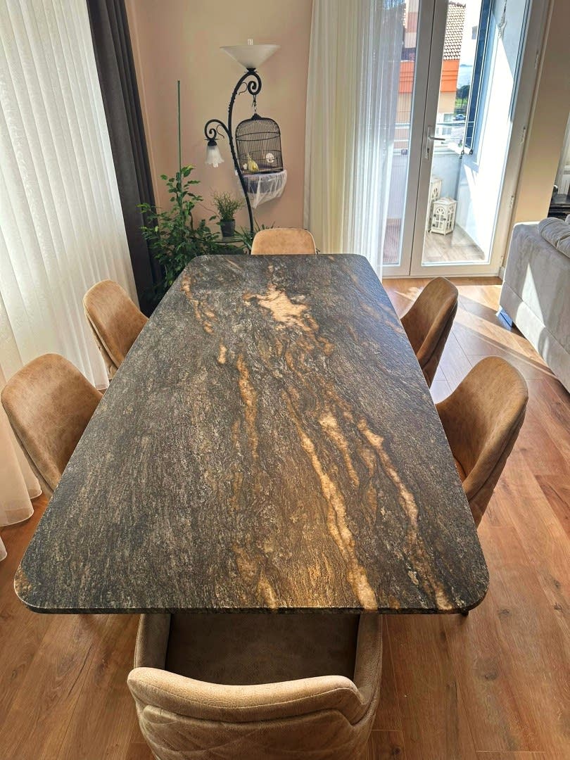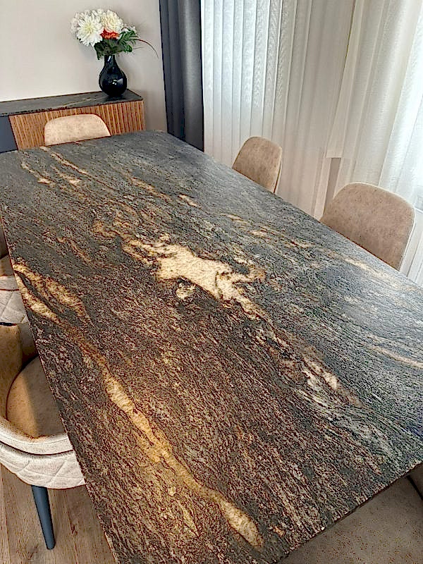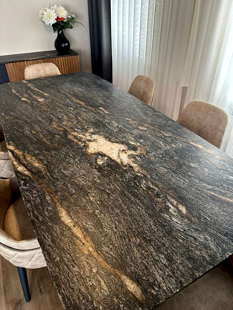 Leather Deri Yüzey Metalicus Gold Granit Masa