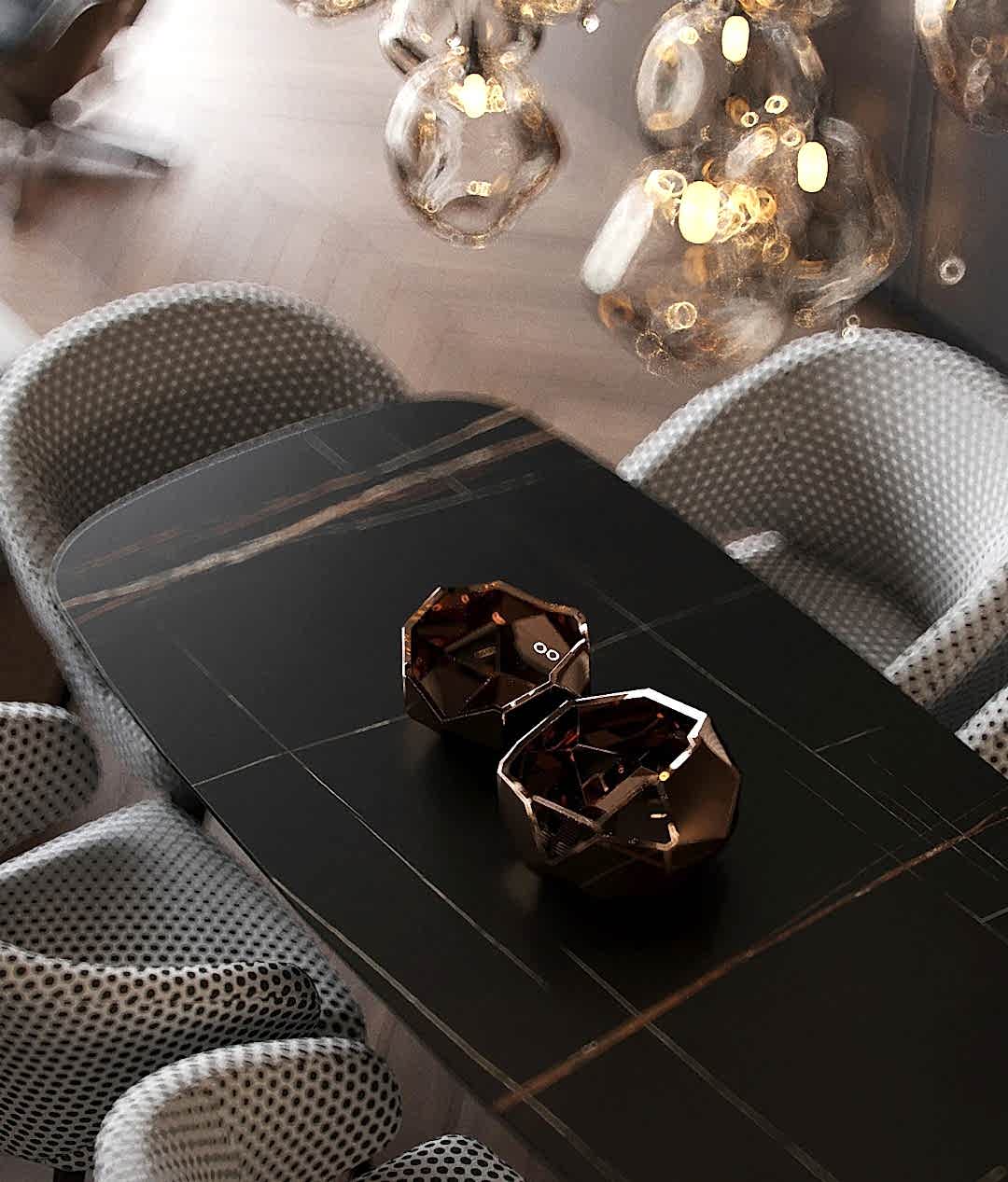 Sahara Noir Mermer’inden yapılmış Sahara Noir Mermer Masa.